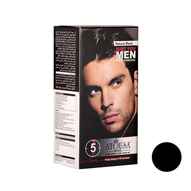 کیت رنگ موی مردانه آتوسا رویال در یک پک کامل به شما عرضه می گردد. این بدان معناست که میزان مناسب از ترکیب رنگ مو و اکسیدان به همراه دستکش برا شما در نظر گرفته شده که با خیال آسوده رنگ موی مورد نظر خود را ترکیب کنید.