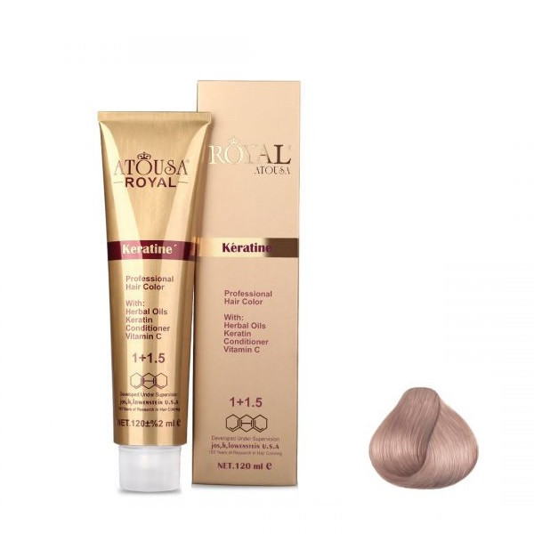 محصولات آتوسا رویال از برند قدیمی آتوسا برگرفته شده که جزء قدیمی ترین و معروف ترین برندهای ایران می باشد. آتوسا هم اکنون با برند با کیفیت تر خود به نام رویال آتوسا یکبار دیگر پا به عرصه محصولات آرایشی گذاشت و انصافا توانسته کیفیتی عالی و ممتاز را در این زمینه ارائه نماید.رنگ مویی غنی برای افرادی که می خواهند موهایی سالم و باطراوت داشته باشند . این رنگ مو با مواد اولیه مرغوب اروپایی و انواع روغن های گیاهی شامل روغن کنجد ، روغن زیتون ، روغن بادام و روغن نارگیل تولید شده است که موجب نرمی ، لطافت و براق شدن فوق العاده موها می گردد.