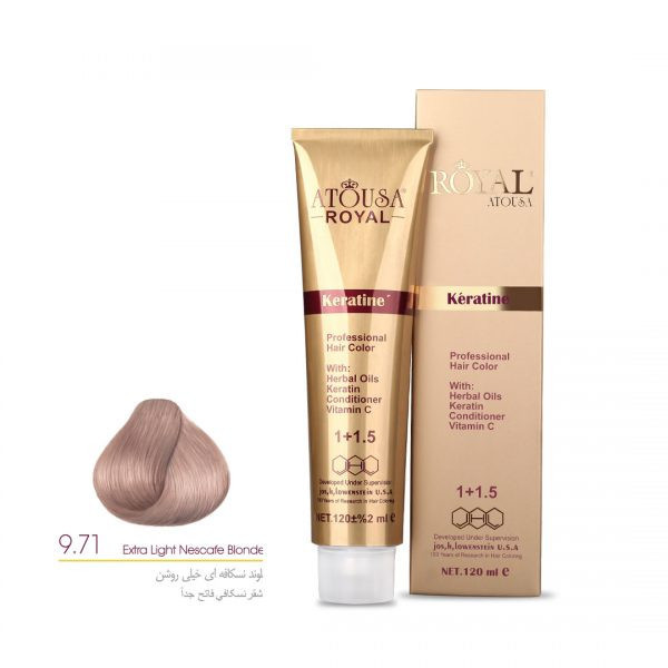 رنگ مو آتوسا رویال شماره 9.71 حجم 120 میلی لیتر رنگ بلوند نسکافه ای خیلی روشن