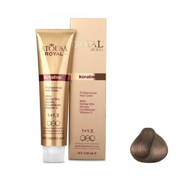 محصولات آتوسا رویال از برند قدیمی آتوسا برگرفته شده که جزء قدیمی ترین و معروف ترین برندهای ایران می باشد. آتوسا هم اکنون با برند با کیفیت تر خود به نام رویال آتوسا یکبار دیگر پا به عرصه محصولات آرایشی گذاشت و انصافا توانسته کیفیتی عالی و ممتاز را در این زمینه ارائه نماید.رنگ مویی غنی برای افرادی که می خواهند موهایی سالم و باطراوت داشته باشند . این رنگ مو با مواد اولیه مرغوب اروپایی و انواع روغن های گیاهی شامل روغن کنجد ، روغن زیتون ، روغن بادام و روغن نارگیل تولید شده است که موجب نرمی ، لطافت و براق شدن فوق العاده موها می گردد.