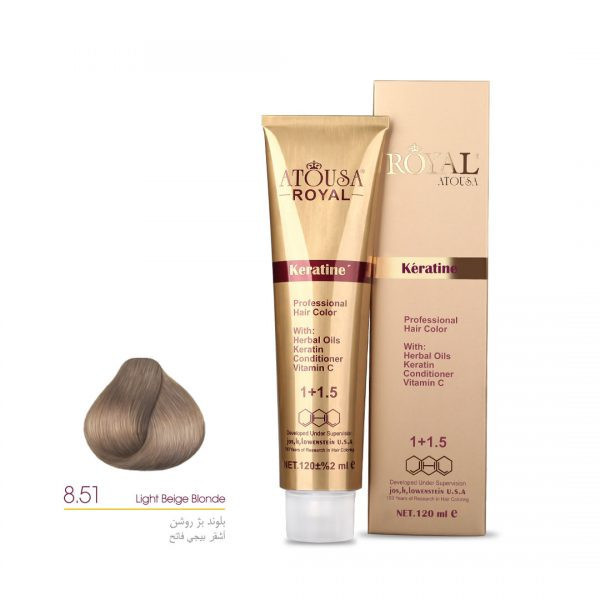 رنگ مو آتوسا رویال شماره 8.51 حجم 120 میلی لیتر رنگ بلوند بژ روشن