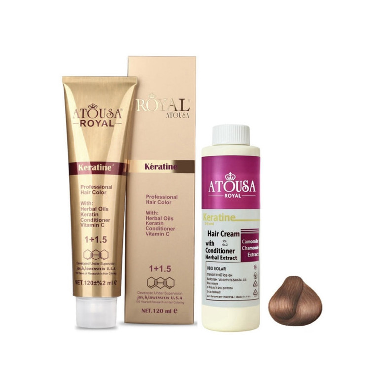 رنگ مو آتوسا رویال شماره 6.475 حجم 120 میلی لیتر رنگ برنزی به همراه اکسیدان آتوسا رویال مدل 2 نه درصدی حجم 75 میلی لیتر