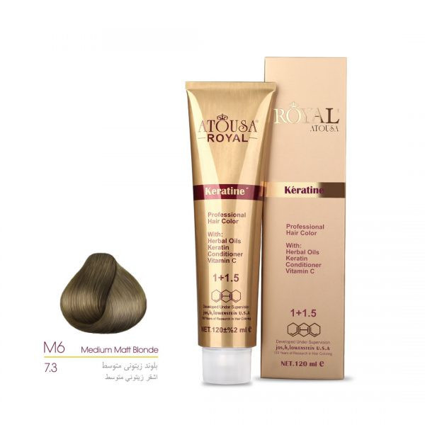 رنگ مو رویال آتوسا شماره 7.3 حجم 120 میلی لیتر رنگ بلوند زیتونی متوسط