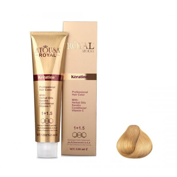 محصولات آتوسا رویال از برند قدیمی آتوسا برگرفته شده که جزء قدیمی ترین و معروف ترین برندهای ایران می باشد. آتوسا هم اکنون با برند با کیفیت تر خود به نام رویال آتوسا یکبار دیگر پا به عرصه محصولات آرایشی گذاشت و انصافا توانسته کیفیتی عالی و ممتاز را در این زمینه ارائه نماید.رنگ مویی غنی برای افرادی که می خواهند موهایی سالم و باطراوت داشته باشند . این رنگ مو با مواد اولیه مرغوب اروپایی و انواع روغن های گیاهی شامل روغن کنجد ، روغن زیتون ، روغن بادام و روغن نارگیل تولید شده است که موجب نرمی ، لطافت و براق شدن فوق العاده موها می گردد.