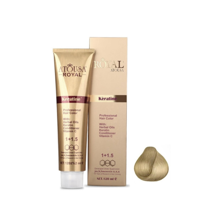 رنگ مو آتوسا رویال شماره 11.3_M10 حجم 120 میلی لیتر رنگ بلوند زیتونی پلاتینه به همراه اکسیدان آتوسا رویال مدل 2 نه درصدی حجم 75 میلی لیتر