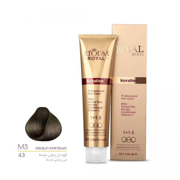 رنگ مو رویال آتوسا شماره 4.3 حجم 120 میلی لیتر رنگ قهوه ای زیتونی متوسط