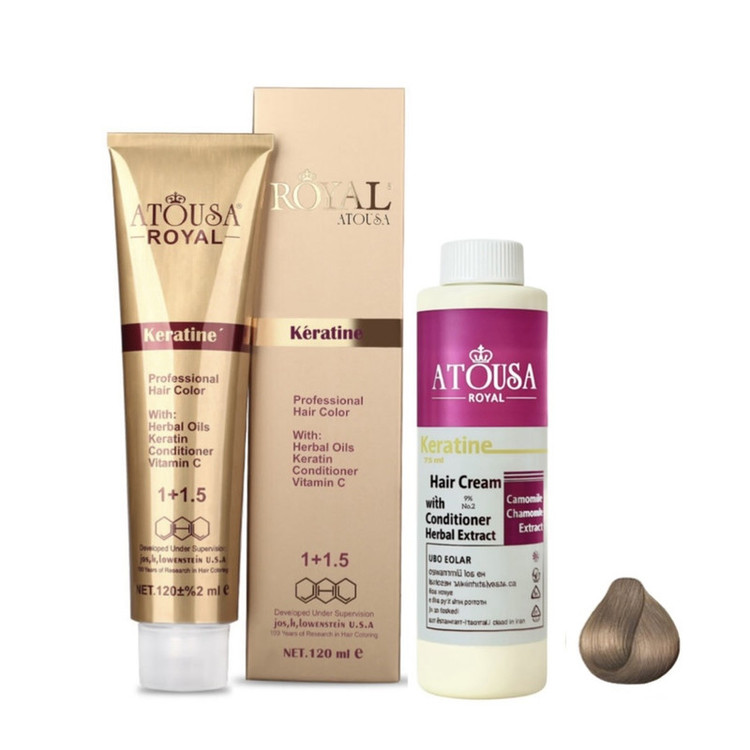رنگ مو آتوسا رویال شماره 7.51 حجم 120 میلی لیتر رنگ بلوند بژ متوسط به همراه اکسیدان آتوسا رویال مدل 2 نه درصدی حجم 75 میلی لیتر