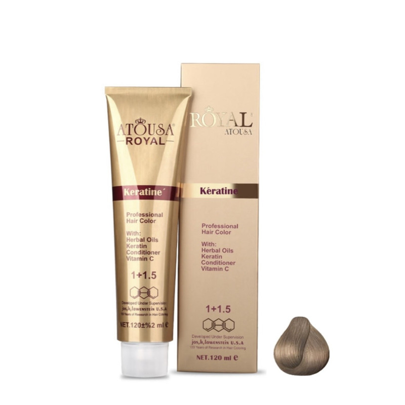 رنگ مو آتوسا رویال شماره 7.51 حجم 120 میلی لیتر رنگ بلوند بژ متوسط به همراه اکسیدان آتوسا رویال مدل 2 نه درصدی حجم 75 میلی لیتر